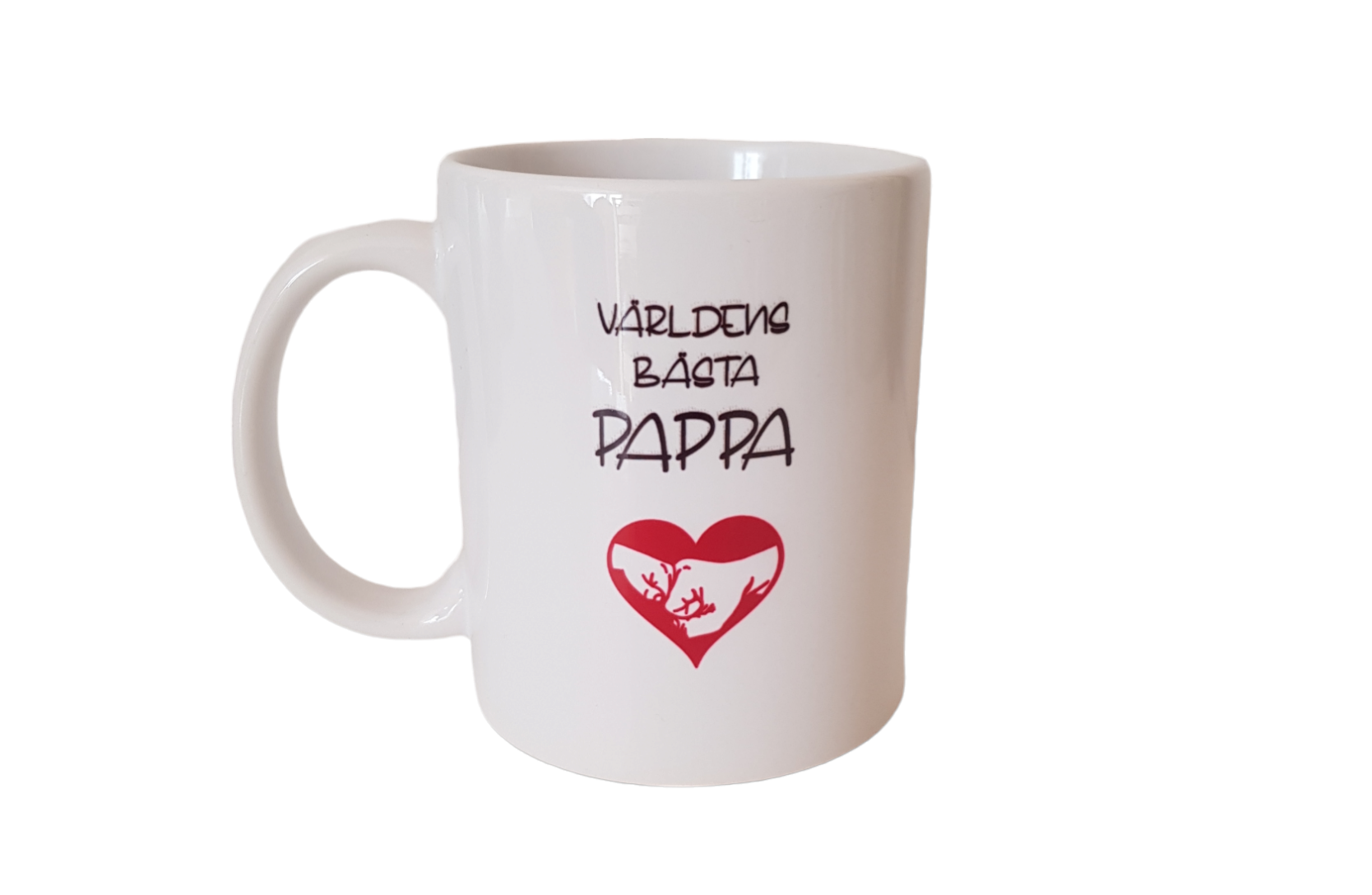 Mugg i porslin med tryck. Tål maskindisk.